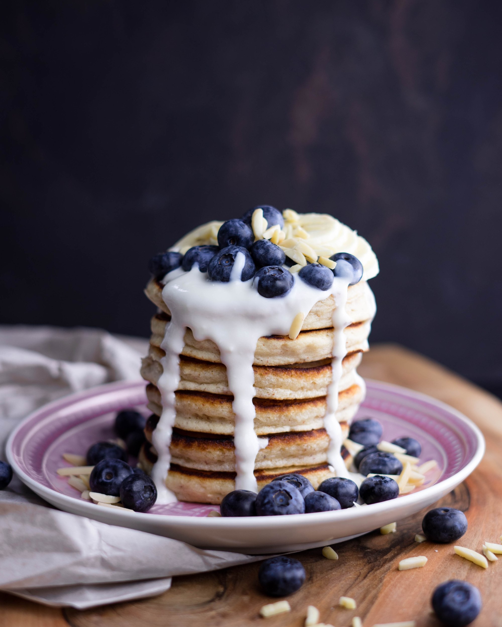 Pancakes are kinda the most delicious way to start your day. And as if simple pancakes themselfs wouldn´t be perfect enough, I added ground almonds and combined them with soyjoghurt and two of my favourite fruits – Blueberries and Bananas.