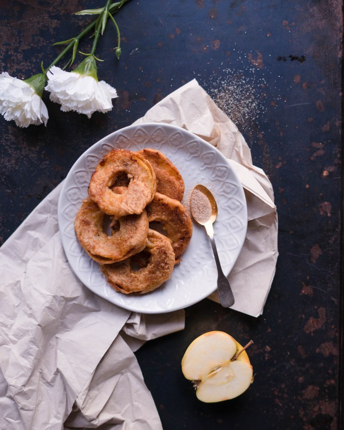 I´ve been at my grandma’s house last week for family dinner and she made these beyond deliciously fried apple rings. I literally died watching my family eating these yummy rings while I ate a raw apple because my grandma is used to make these with eggs. So I decided to veganise the recipe!